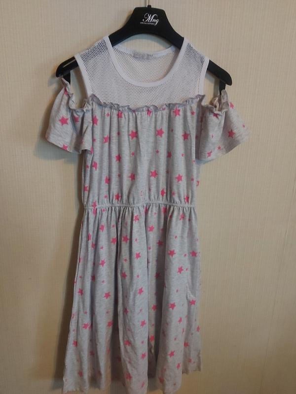 Гарна бавовняна сукня з відкритими плечима. Легка і зручна. Зверху сітка. Груди 45 см, довжина 90 см