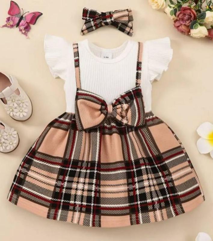 Платье-сарафан с большим бантом клетка, размер 2-3роки, замеры: плечи 21см, грудная 27см, пояс- резинка 25см, длина 52см.