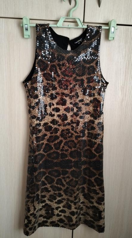 платье леопардовое с пайетками. состояние новое, размер на рост 158