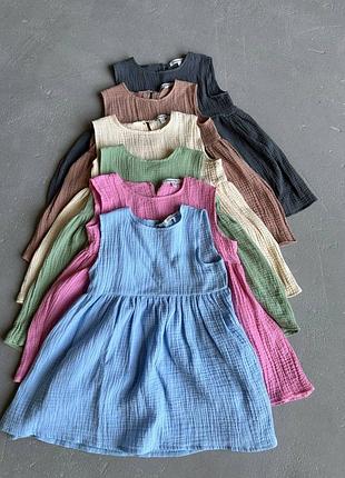 Розмір 92-110 ціна 790 грн Розмір 116-146 ціна 899 грн Легка муслінова сукня зі 100% натуральної тканини яка не парить на літо для Ваших принцес. Сукня буде дуже доречна як на кожен день так і на свято тканина: муслін ( 100% бавовна) розміри: 92-98; 104-110; 116-122; 128-134; 140-146 кольори : блакитний, барбі, графіт, молоко, шоколад, оливка