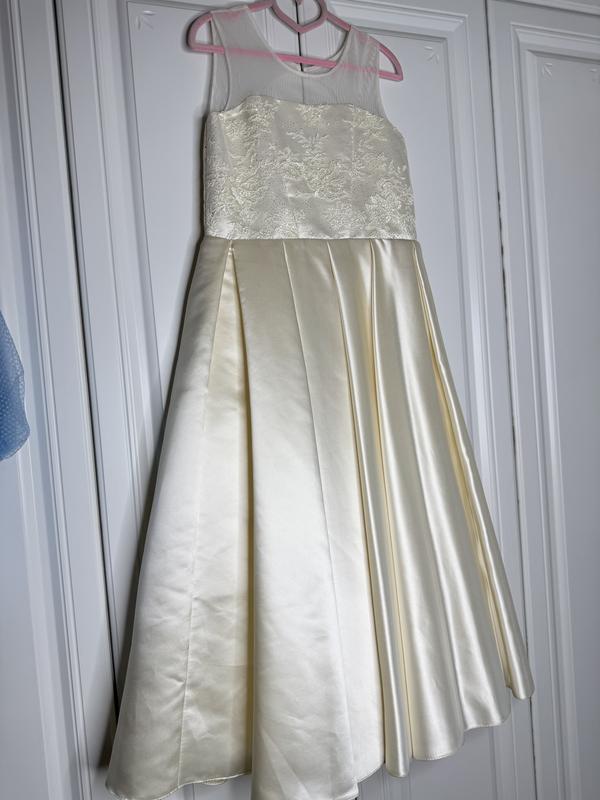Сукня була вдягнена один раз! Шикарна атласна сукня В ідеальному стані Підійде на випускний в садочок, перше причастя, день народження та інші свята Прям зомний Сукня на худеньку дівчинку, по спинці шнурівка ПОГ -34.5 см ПОТ- 33 см Довжина верху -32 см Загальна довжина-101 см