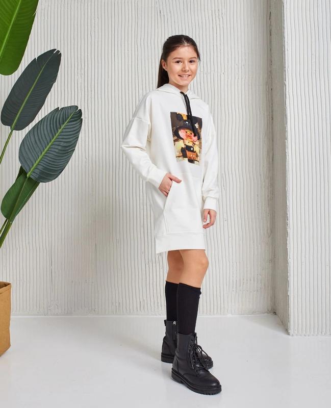 Стильное худи-платье с лалафанфан лана Отменное качетсво друнить пинье , сублимационная нашивка не трескает. не линяет Размеры : 146-1шт Замеры : 146 рост дл-76 см рук-63 см пог-46 см