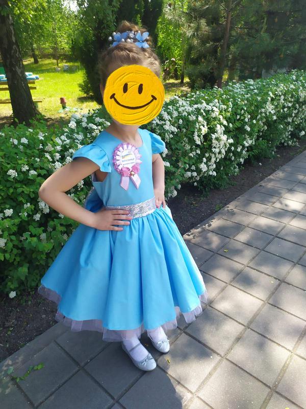 Платье на рост 116-122 см. Длина по ткани 56,5 см, с учетом фатина 62 см. Грудь 30 см. Сзади вырез в виде сердца и бант с пайеток.