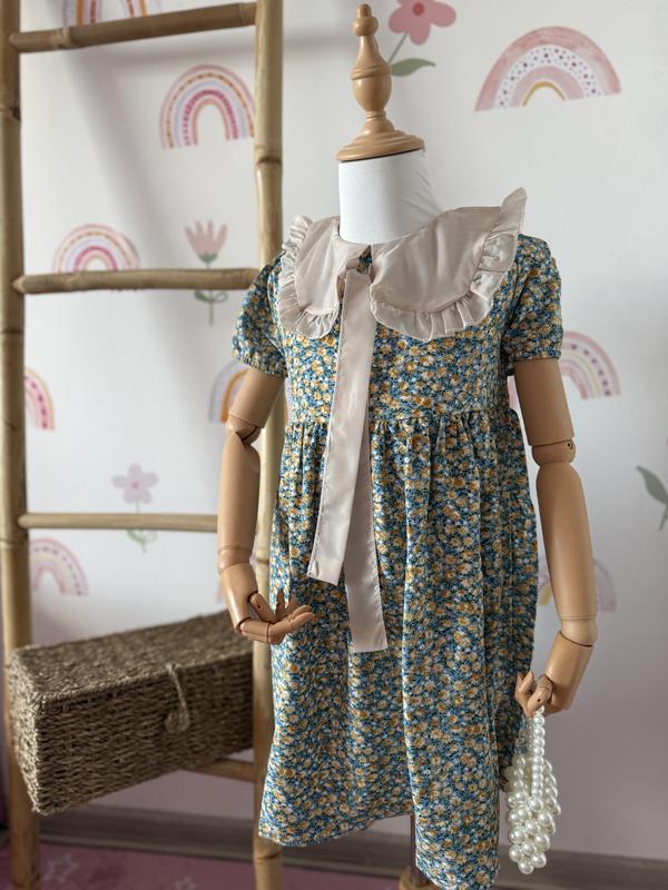 Сукня в квіточки Білий комір , завязується на бант Короткий рукав Дуже гарне та легке Розміри : 100 ( груди 28, довжина 54) 110 ( груди 31, довжина 61) 120 ( груди 31, довжина 63) 130 ( груди 33, довжина 65) 140 ( груди 34, довжина 67) 550 грн