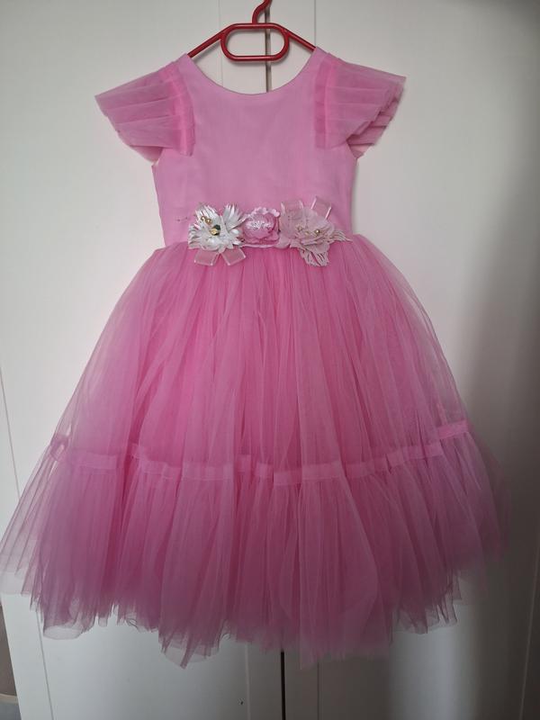 Платье было одето 1 раз. В подарок отдам обруч и пояс с цветами Размер 116-128