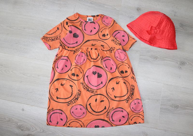 Хлопковое платье со смайлами - в отличном состоянии. По наборке на 5-6 лет, будет дольше. Замеры: длина - 64 см, ПОГ - 35.
