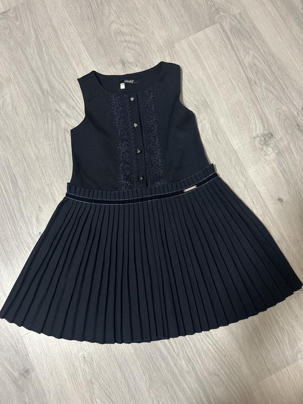 Плаття в чудовому стані. Розмір - 116. 60% коттон, 40% поліестер. Можна одягати під блузку. Стиль класичний. Довжина - 60 см. Ширина під руками - 32 см. Колір - темно-синій. Ціна - 400 грн.