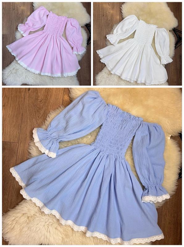 💝Стильное муслиновое платье для девушек 🪡Ткань: муслин (Турция). Верхняя часть платья собрана, красиво тянется Размеры: долж от груди/пог/рукав 134р-60/тянется до 39/38