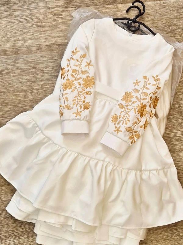 Нежное платье с вышивкой для красавиц 💗 Застегивается по спинке на молнию, завязывается под поясок ткань костюмка барби ЦВЕТ МОЛОЧНЫЙ Замеры : Длина/пог/рукав от плеча 128 - 69/33/45 134 - 71/34/48 140 - 74/36/50 146 - 77/37/53 128 - 2 134 - 2 140 - 2 146 - 2