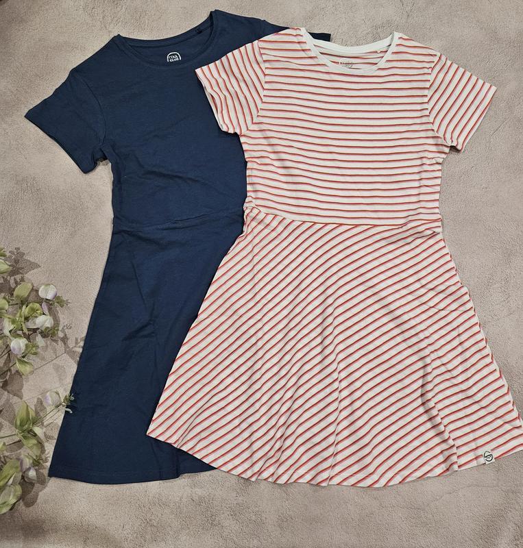 Отличный набор из 2-х платьев.Олна в полоску,другая просто темно-синяя.Это 100% хлопок.Сукучие легкие и приятные к телу.Цена указана за набор