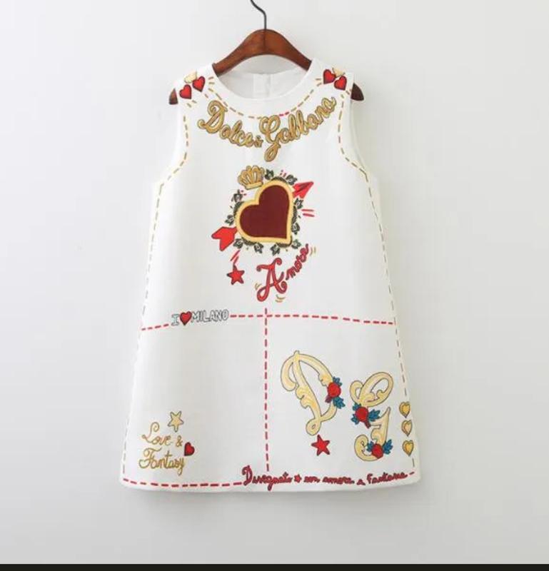 Платье в стиле известного бренда для девочки 3/4 года. Состояние новой. Одеты на 1 час. Тканина 100% коттон, на хлопковой подкладке. Длина 57, полуобхват груди 32.