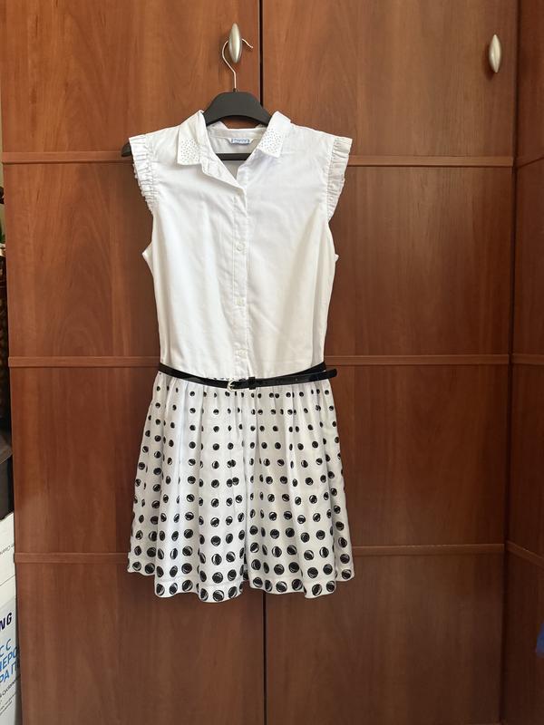Сукня бавовняна дитяча для дівчат з паском. З візерунком «в горох». Комірець з лелітками. Всі ґудзики пришиті