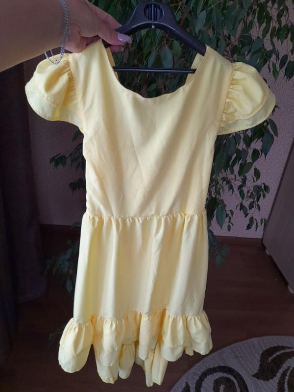 в очень красивом состоянии, без дефектов, по наборке 152,3 фото лучше всего передает цвет( насыщенный желтый) перед платья короче идет