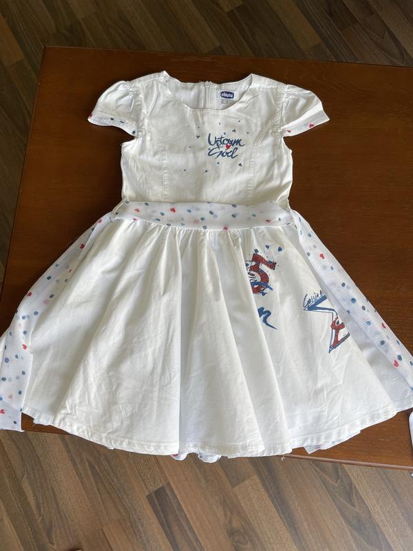 Продам в відмінному стані літне плаття Італійського бренду Chico для дівчинки на 4.- 5 років ,на зріст 110 см Вироблено в Італії..Позаду плаття знаходиться замок до пояса.Робе безотказнот.Матеріал 100% cotton .Ніяких плям і пошкоджень на ньому немає,Стан плаття новий. Дитина носила його дуже мало ,тому що його привезли з закордону на прикінці літа.