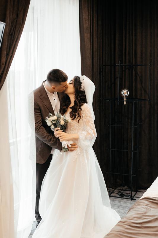 Весільня сукня зі шлейфом розмір s дуже гарному стані після хімчисткі додатково є ше халатик для ранок нариченої