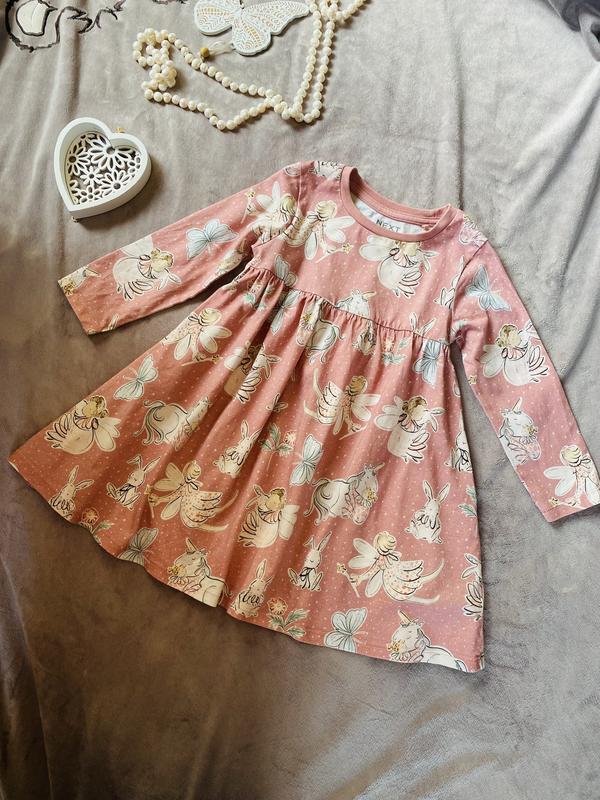 Красивое и нежное коттоновое платье Next. Стан идеален, как новенькое. Размер 98 (2-3 года), но лучше ориентироваться на замеры. Длина по спинке 50 см. ПОГ 29 см. Доп. фото и замеры по требованию.