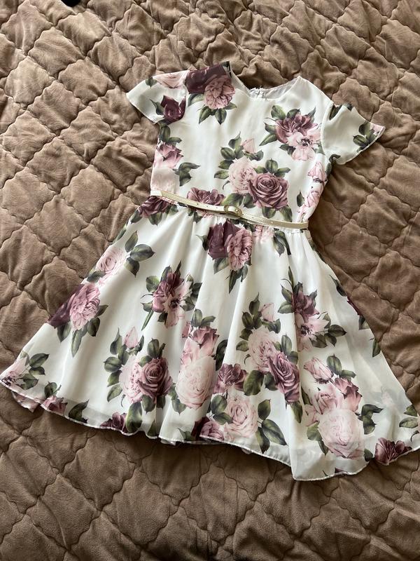 Дуже гарне, легке шифонове пляття для дівчинки. В комплекті йде пояс. На спинці застібка. Має підкладку. Розмір 140 см.