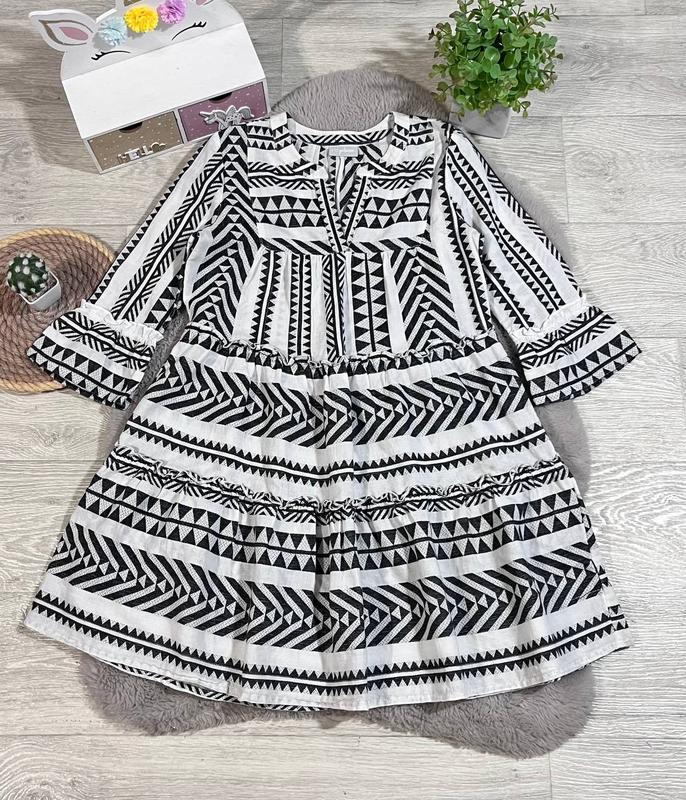 Красивое платье в отличном состоянии Превосходное качество, ткань легкая, натуральная 100%коттон Размер по набору 10р можно дольше Дол 77 пог 40 рукав 39