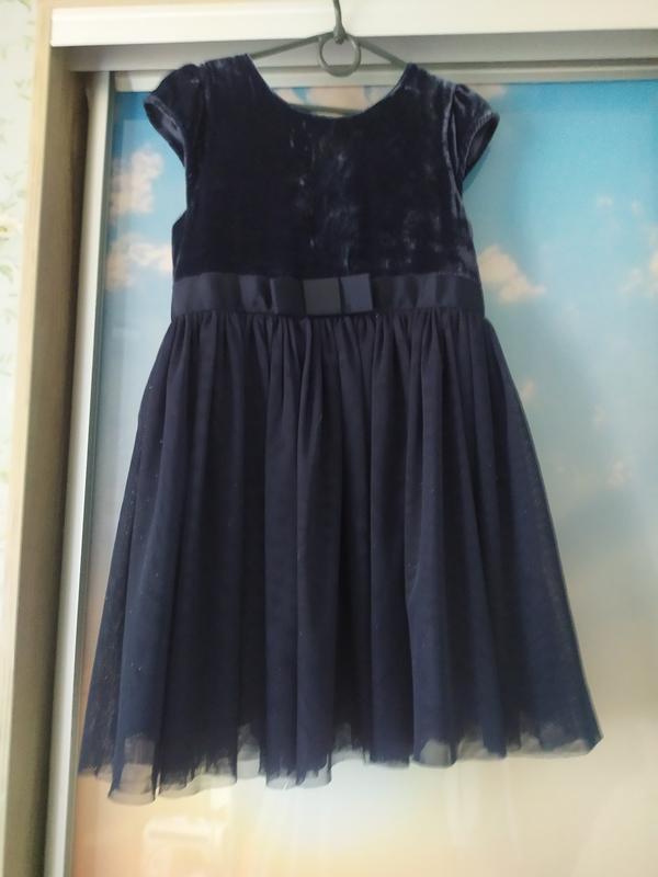 платье празднично в идеальном состоянии т.синего цвета верх велюр юбка подклад, а сверху мягкая двойная сеточка в блестках. Очень красиво смотрится на 5-7 рочков длина 60 см. ПОГ 32 см.