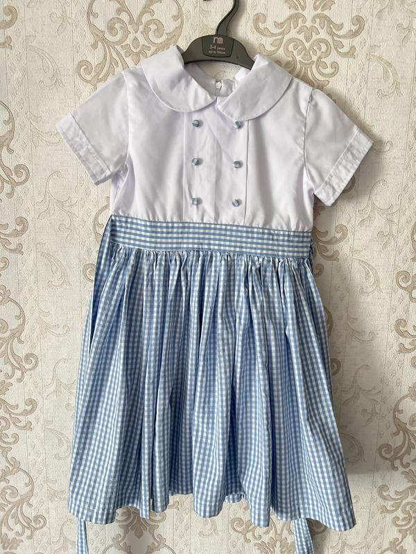 Сукня для дівчинки 134-140 . З натуральної тканини , українського виробника @************* . Ззаду на потайній блискавці, регулюється бантом на поясі . Для справжньої маленької леді . Довжина 71, талія 33, плечі 30