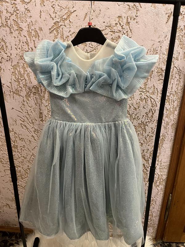 Сукня в ідеальному стані, надягалась двічі на свято Має декілька шарів спідниці Неймовірно гарно виблискує Розмір 100