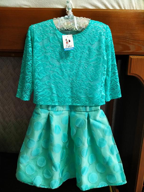 Новое,стильное платье, платье в горох для девочки 6-7 р-122 г Длина-70 см, от плеча до талии-38 см, под руками-38 см, тянется, по талии-30 см