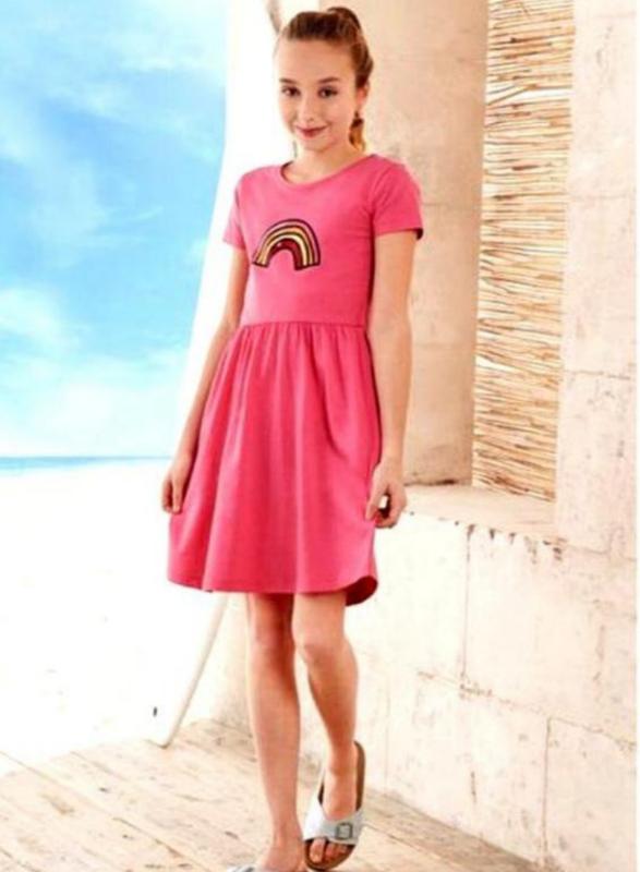 Очень легкое платье на девочку от брендового производителя из Нимечкин. Размер 146/152(2шт) на 10-12р. длина-80см. дпг-41см. талия на резинке 64см.
