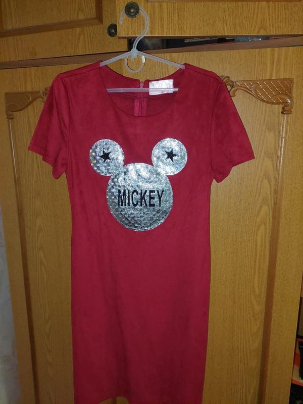 Платье на девочку с принтом Микки бордового цвета, ткань спандекс. Состояние платья идеальный.Замеры ПОГ 36 см; ПОБ 39 см; длина платья 78 см, рукав 16 см.