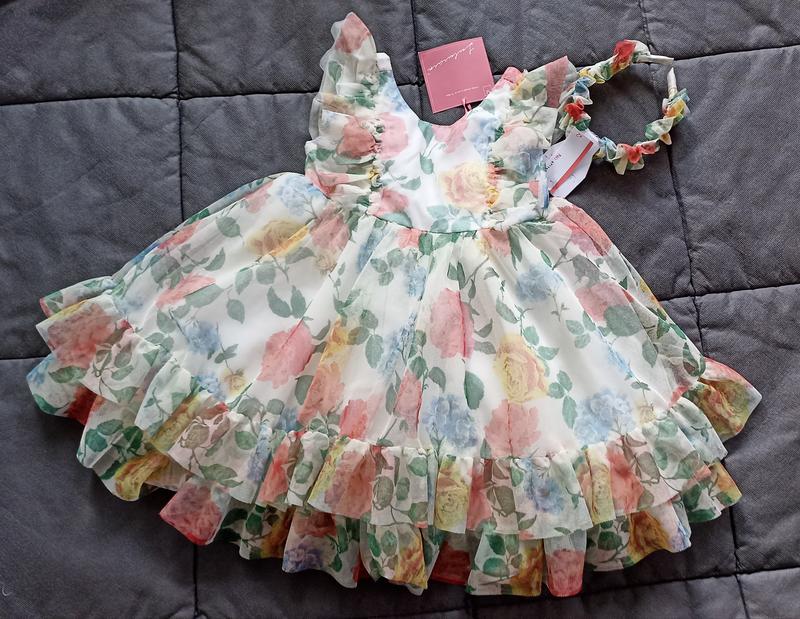 Новое нарядное пышное платье для красавицы в возрасте 3 - 4 года (104) с обручем. Длина - 57 см. Имеется подходящее платье Zara для мамы, размер S. Состояние новой.
