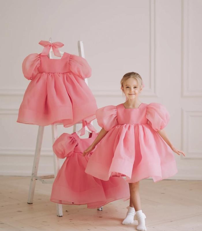 Нова сукня + бант для волосся (купляли як запасну на випадок якщо не встигнуть відшити на випуск ) Колір рожевий(3 та 4 фото передають колір в реальності) Ми брали для дівчинки 6,5 років, орієнтувались по ОГ Тому також орієнтуйтесь, заміри на фото) Сукня відшита , не Китай