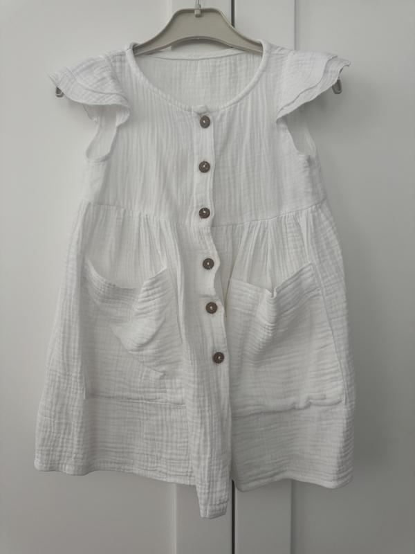 Невагома, легенька сукня для Вашої красуні з двошарового мусліну у білому кольорі з ґудзиками