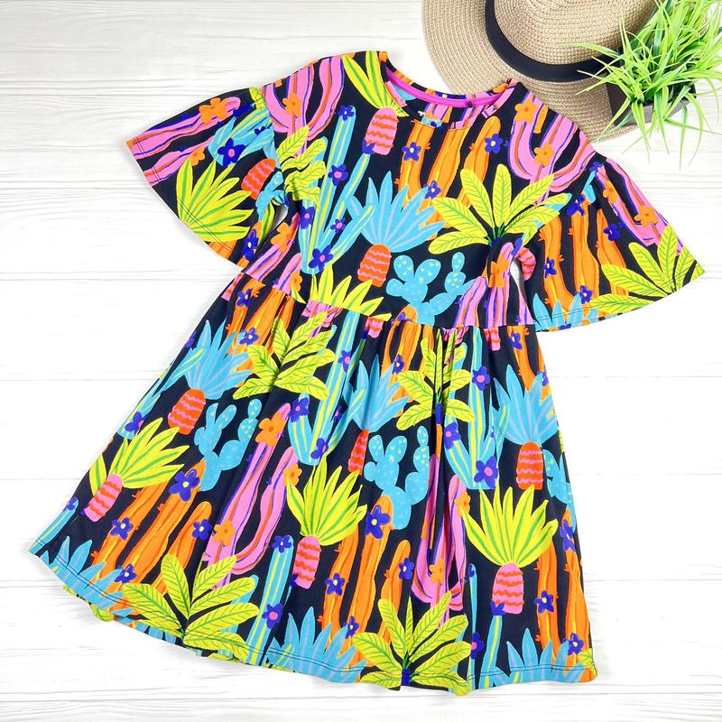 Яскрава сукня в кактусах від Tu на 7 років, 122 см. ▪️стан нової ▪️тканина 100 котон ▪️вироб. Шрі Ланка Плечі спущені 40.5 Пог 36 Талія 36, тягнеться Довжина топа 28.5-29 Загальна довжина 66
