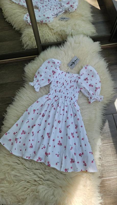 через кнопку купить только полная оплата!!! Стильное муслиновое платье для девушек Верхняя часть платья собрана, красиво тянется. Внизу спереди разрез. Ткань - муслин (Турция). Замеры: 140 длина от плеча - 72см, полуобхват груди - тянется до 40см. 146 длина от плеча - 74см, полуобхват груди - тянется до 41см. Мс