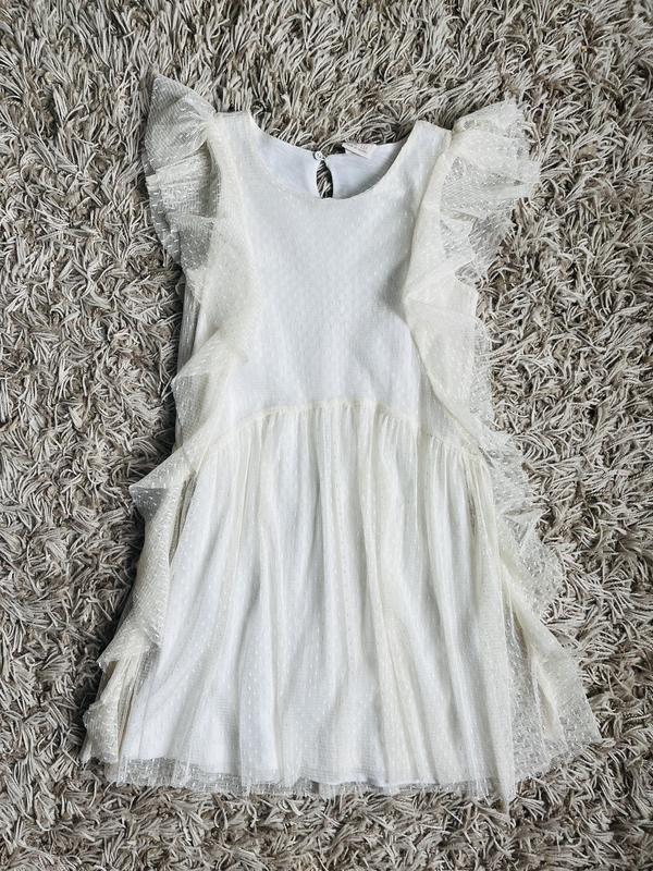 Неймовірно гарна сукня! Колір молочний Як на мене, то більшомірить Зверху як сіточка чи мереживо, а до тіла підкладка з натур тканини Заміри на фото