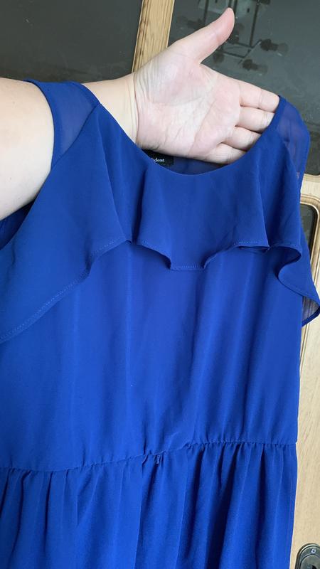 Шифонова темно синя сукня, з нюансів немає пояса.