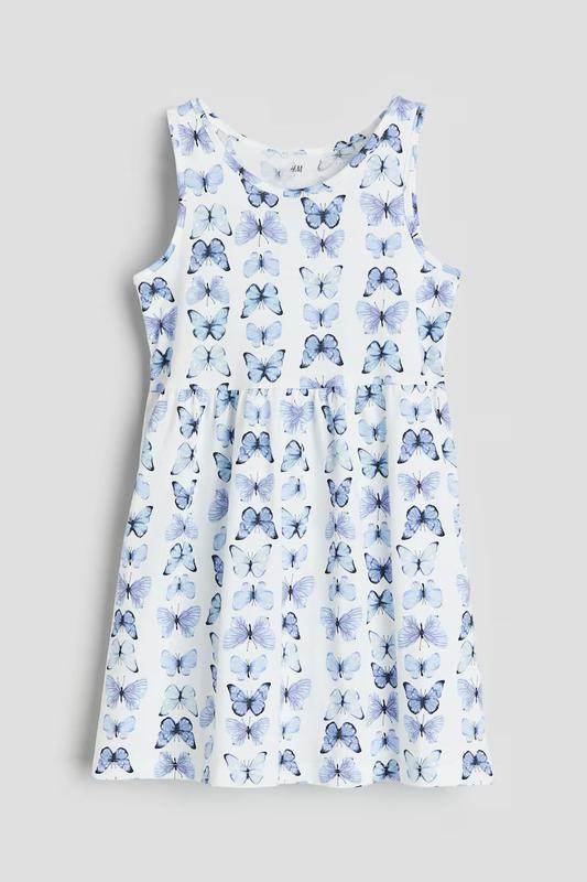 100% бавовна СУКНЯЯ С хлопка с узором. Удобное платье без рукавов из мягкого узорчатого хлопкового трикотажа с убранной талией и слегка юбкой. Ширина плеч 20см, полуобхват груди 29см, длина изделия 61см.