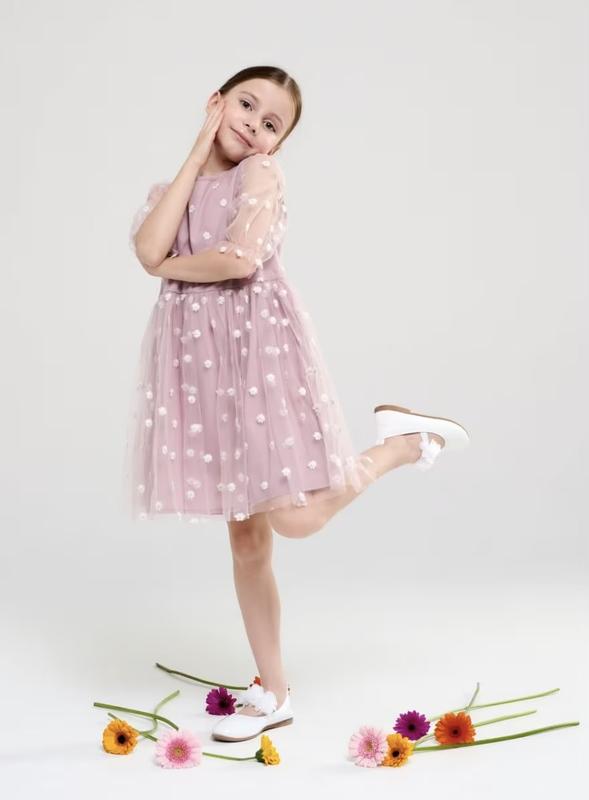 Нарядное, нежное платье с фатином, вышивка ромашки. Одето один раз, состояние нового. Размер 116.