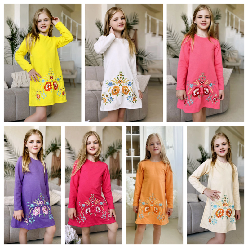 Платье для девочки "жержины" двуниткое, платье с вышивкой для девочки с длинным рукавом
