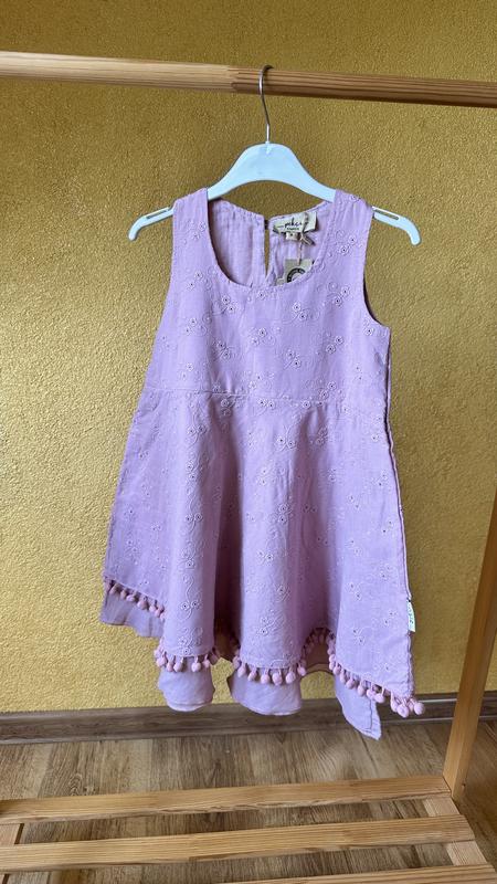 Легенька і надзвичайно красива сукня для дівчинки 2/3 років. Довжина - 57 см Напівобхват - 31 см Вільний крій. Не повинна бути приталена. Виготовлена в Туреччині. 100% бавовна.