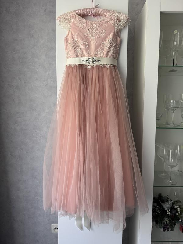 🎀 Ніжна святкова сукня для дівчинки, 6–8 років 🎀 ✨ Розкішний дизайн з вишивкою та фатиновою спідницею ✨ Колір: ніжно-рожевий з мереживом і поясом з камінчиками ✨ Стан: одягалася лише 1 раз на свято ✨ Ідеально підходить для випускного з садочка, фотосесії, весілля чи урочистих подій 📏 Орієнтовно на зріст 122–134 см (6–8 років) Ручна робота, шили у весільному салоні, з дорогого та якісного матеріалу. Дитина вдягала один раз у садочок