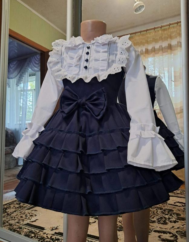 Школьный наряд для девочки сшил под заказ по вашим замерам почти любого размера. Фото прицела но может не передать реального цвета поэтому учитывать это! Цветы возможно: электрик, черный,темно-синий, голубой, серый, бордовый и другие. Возможно ваши варианты школьной формы а это сарафаны, наконечники наборы и прочее отправляйте ухоженную. 👇👇👇👇👇👇 Цена от размера зависит -1750 грн примерно, уточняйте перед заказом!👈👈👈☝️☝️☝️ Я работаю по предоплате примерно от 30-40%, другие отправляю налобкой или все средства как вам будет удобнее поговорки. ВАЖНО!!!:Сороки пошива зависят от загруженности от 5-10 дней может быть и более всего уточняйте перед заказом, на сайте указано примерно... Все зависит от загруженности и как можно есть сезон! Качественно имеется на изделии сеточно,то иногда рисунок может меняться это тоже уточняйте. БАНТИК НА ГОЛОВУЮ ЗА БАЖАЕМ примерно от +95 грн до цены. Может быть некоторые модели есть в наличии уточняйте 👈👈👈 Для подростков и взрослых тоже возможно сшить цену буду перечитывать по вашим замерам. Приятных заказов ❤️