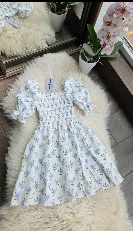 через кнопку купить только полная оплата!!! Нежное муслиновое платье Верхняя часть платья собрана, красиво тянется Внизу спереди разрез Ткань - муслин Отличное качество 🦋140-длина от плеча - 72, пог - тянется до 40 🦋146 -длина от плеча - 74, пог - тянется до 41 🦋152-длина от плеча - 79, пог-тянется до 42 Греб