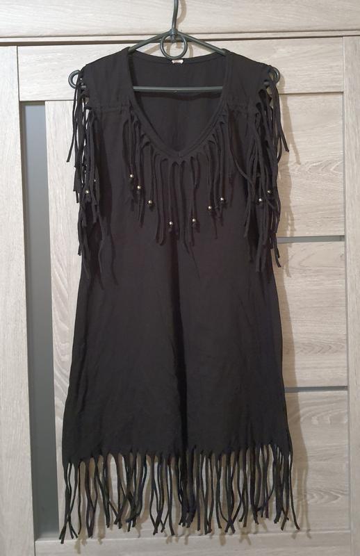 Гарний стан,на дівчинку 10-13 років, тканина трикотаж. 140-158 Довжина -73см. до китиць,довжина з китицями-87см., ширина під руками -44см., талія -42см., бедра -51см.