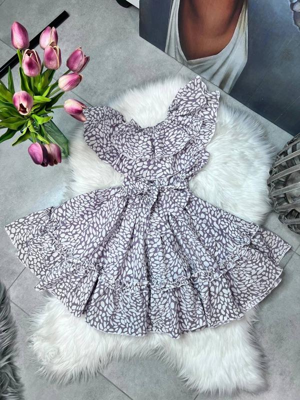 Легка та зручна сукня для дівчинки, має рюші на рукавах та по низу, що додають чарівності. Еластична талія забезпечує комфортну посадку. Ідеальна для літа, свят та прогулянок. Тканина - софт Розміри 140-164