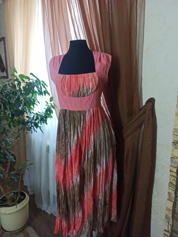 Платье женское миди индивидуального пошива. Идентической не найдете. Объем груди 88-90, завышенная линия талии. Лиф из льна, низ- полиэстер, эффект гофре с мягкими волнами.
