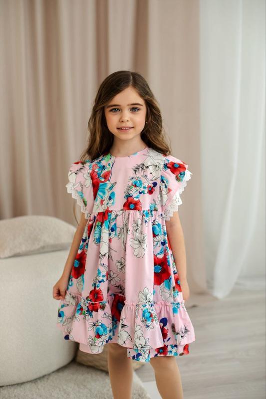 НОВИНКА 🌸 Летнее яркое платье 👗 Тканина котон в принт. Рукавчик отделлен кружевом. Размеры 110, 116, 122, 134 Цена 550 грн