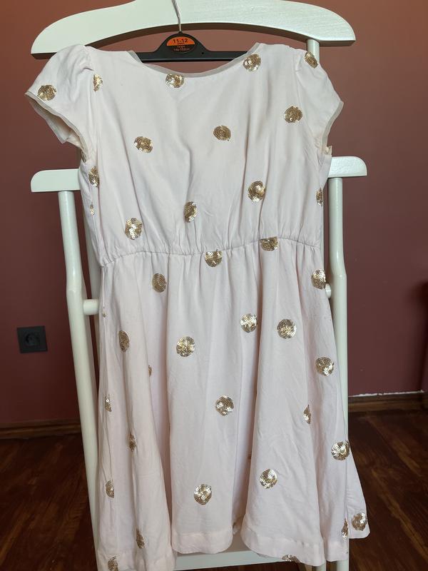 Сукня дитяча повсякденна, ззаду є невеликі катишки на фото видно. Легенька літня сукня на застібці, рожевого кольору.