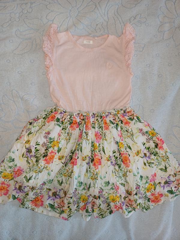 Платье с юбкой в цветы р.122, длина - 64 см, под руками- 31 см. Состав- 100 коттон, юбка верх - возрастная, подъюпник - 100% коттон. Стан новой.Отправлю Укр-почтой, Новой Поштой.