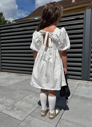 Ніжна та білосніжна, легка святкова сукня на підкладці. Рукави фонарики та завязка на спині роблять її ще наряднішою.
