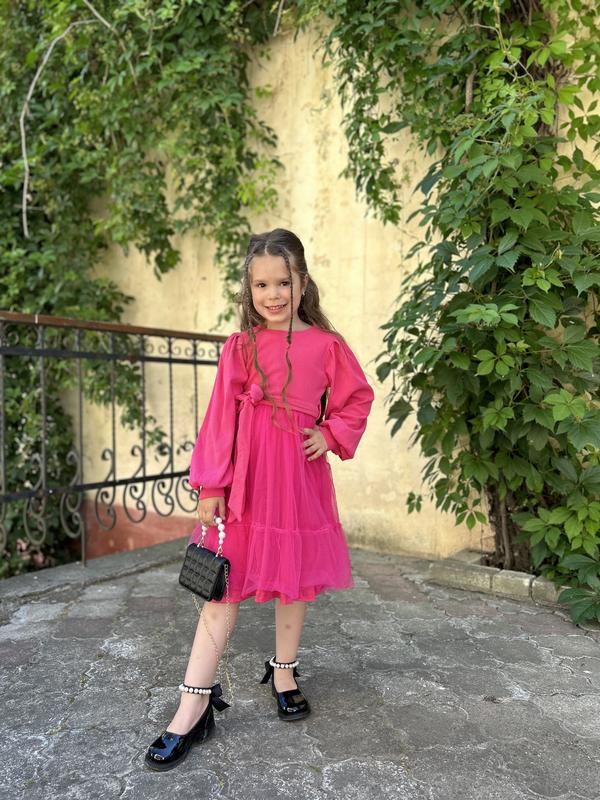 В наличии размер 120 Мягкий приятный материал, сверху фатин, рукавчик фонарик, поясок Замеры в сообщения